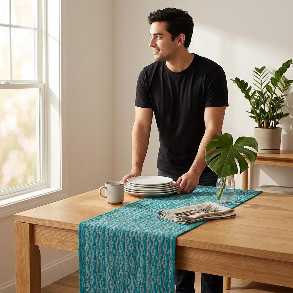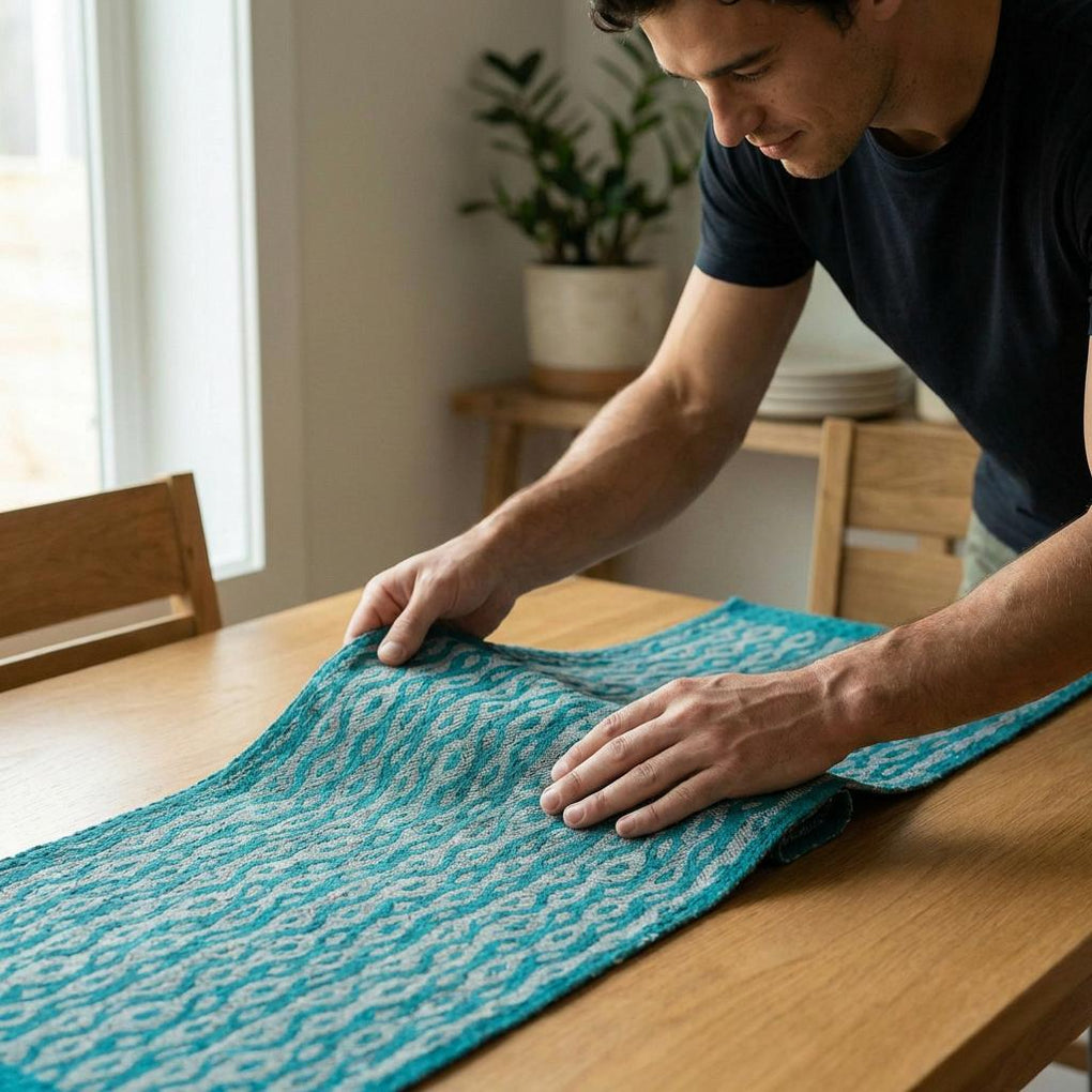 Artisan Hand Loomed Cotton Table Runner - Blue Ocean - 18"x96."