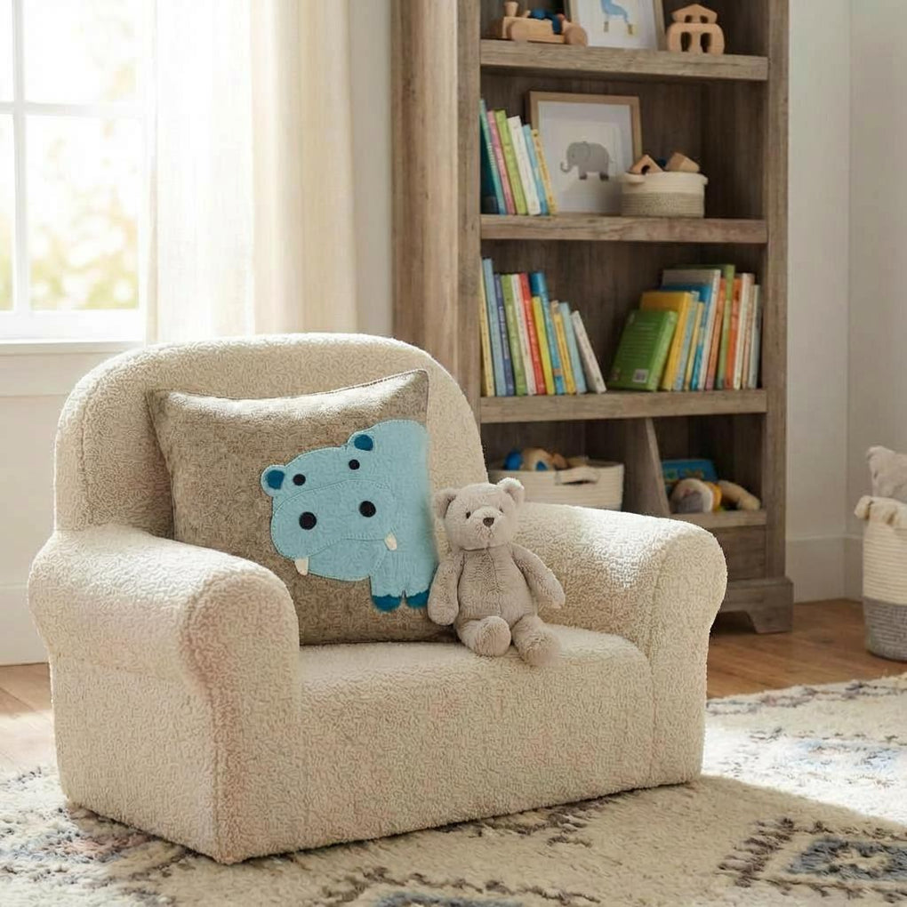 This curious blue hippo on this pillow will make you smile. His bottom winds around to the back of the pillow. Mix and match with other Arcadia Home animal pillows for a fantastic arrangement.