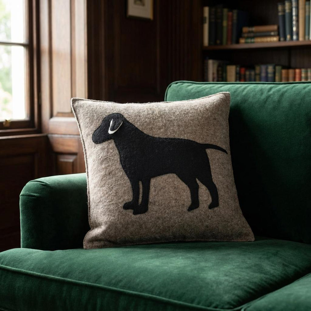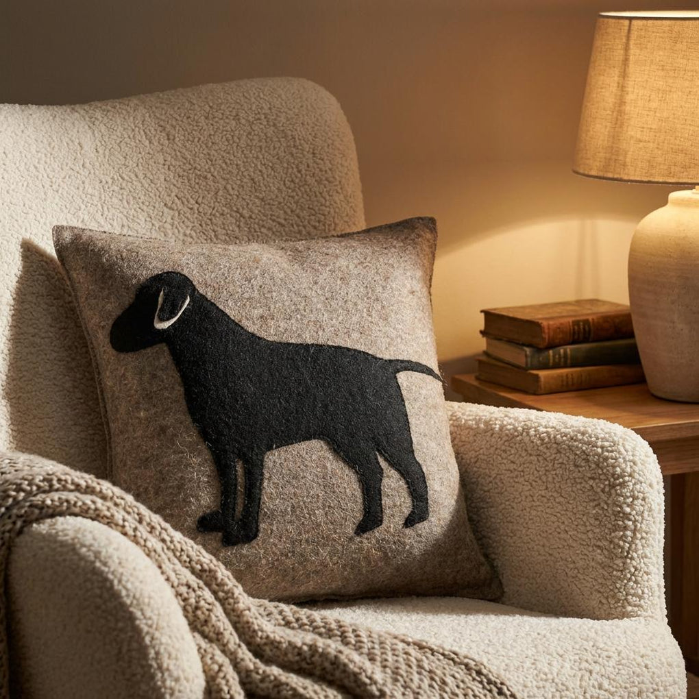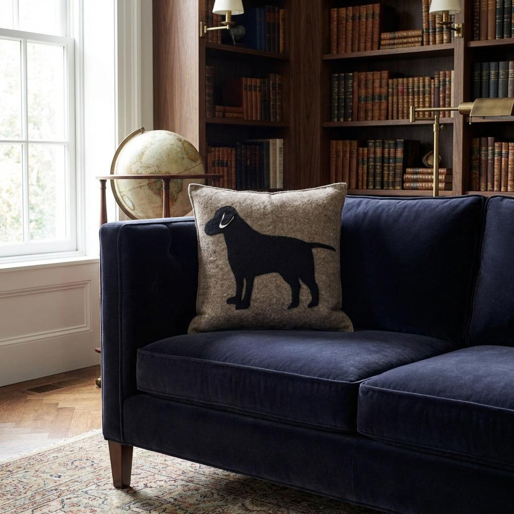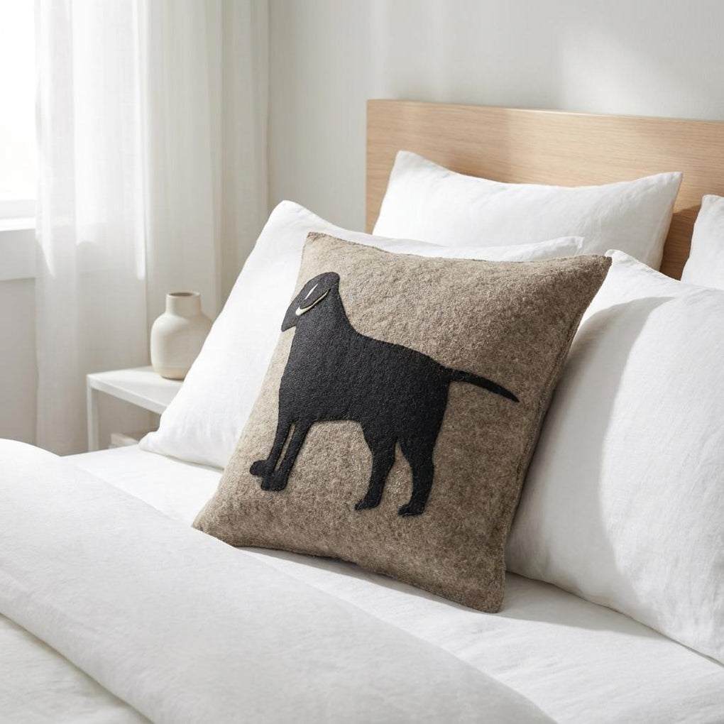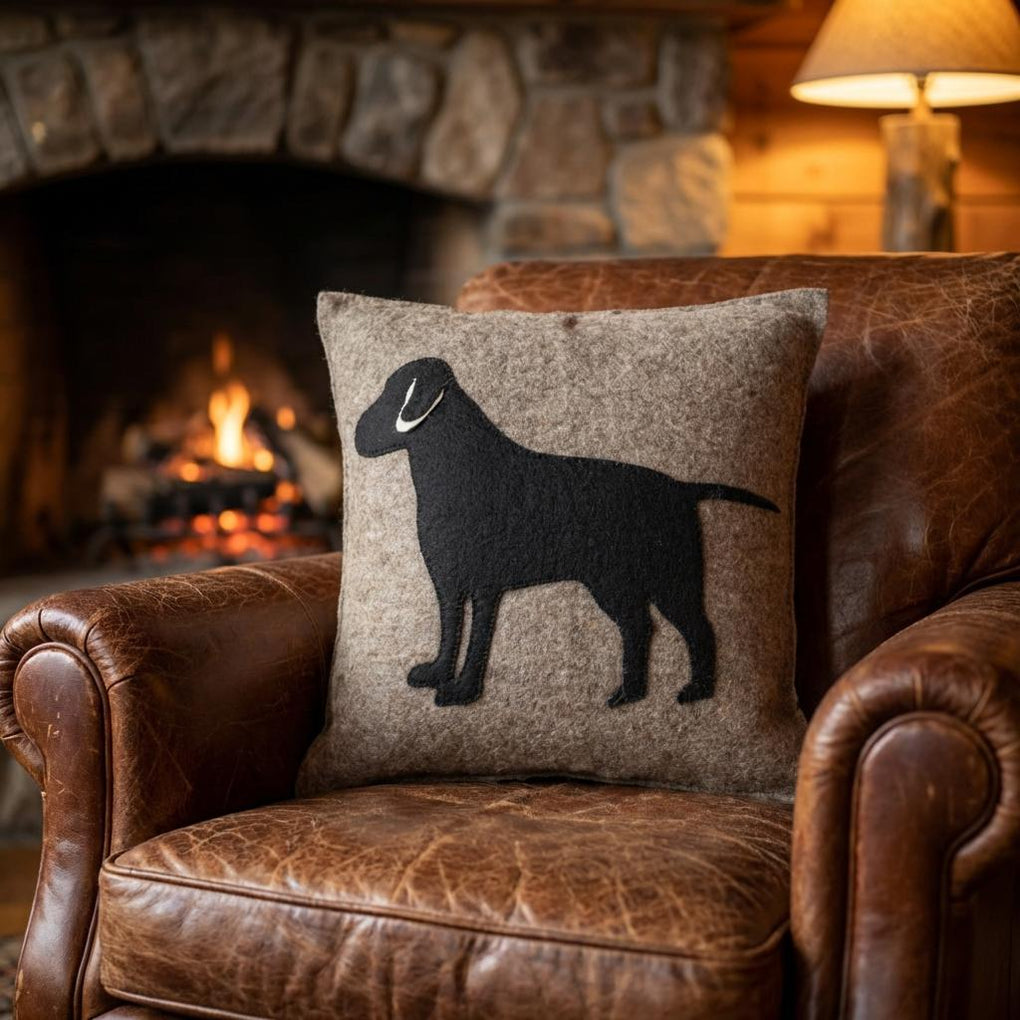 Handmade Pillow in Hand Felted Wool - Black Lab on Gray - 20"