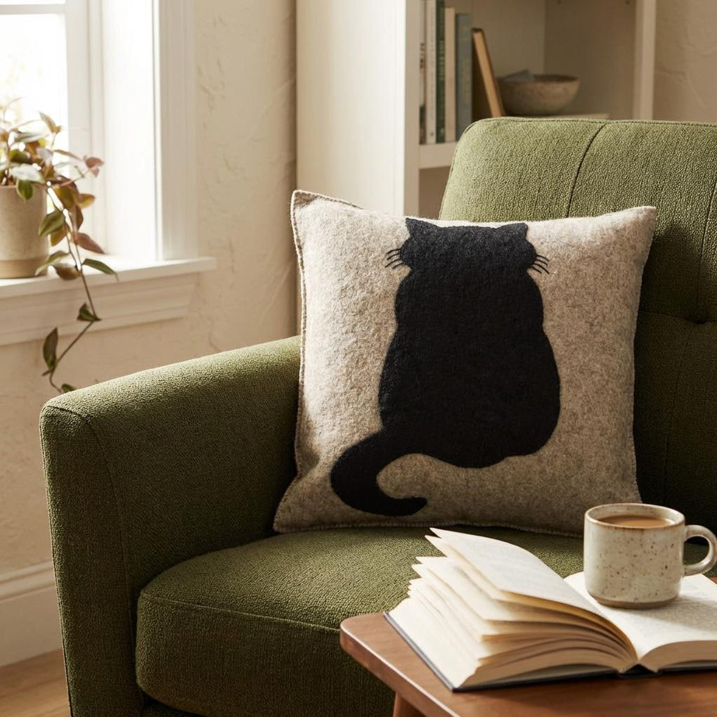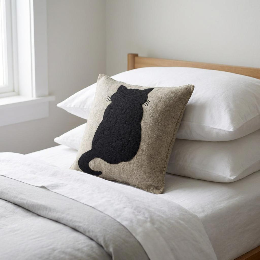 Whiskers and a winding tail complete the classic feline silhouette on this pillow. Perfect accent for the pet-lover's home, and a lovely gift for your cat-loving friend.