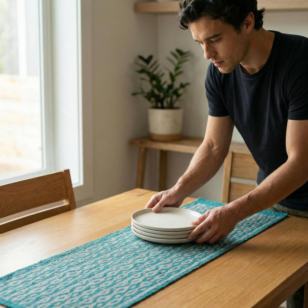 Artisan Hand Loomed Cotton Table Runner - Blue Ocean - 18"x96."