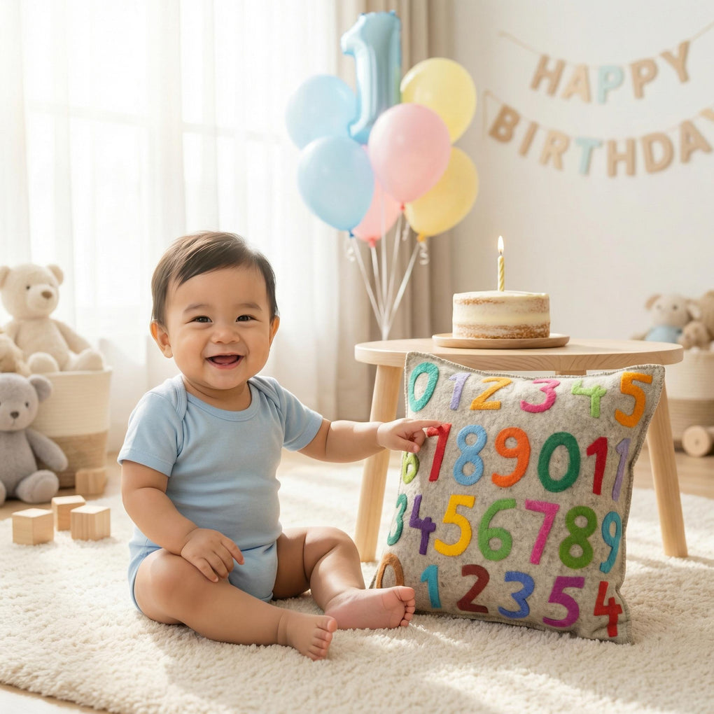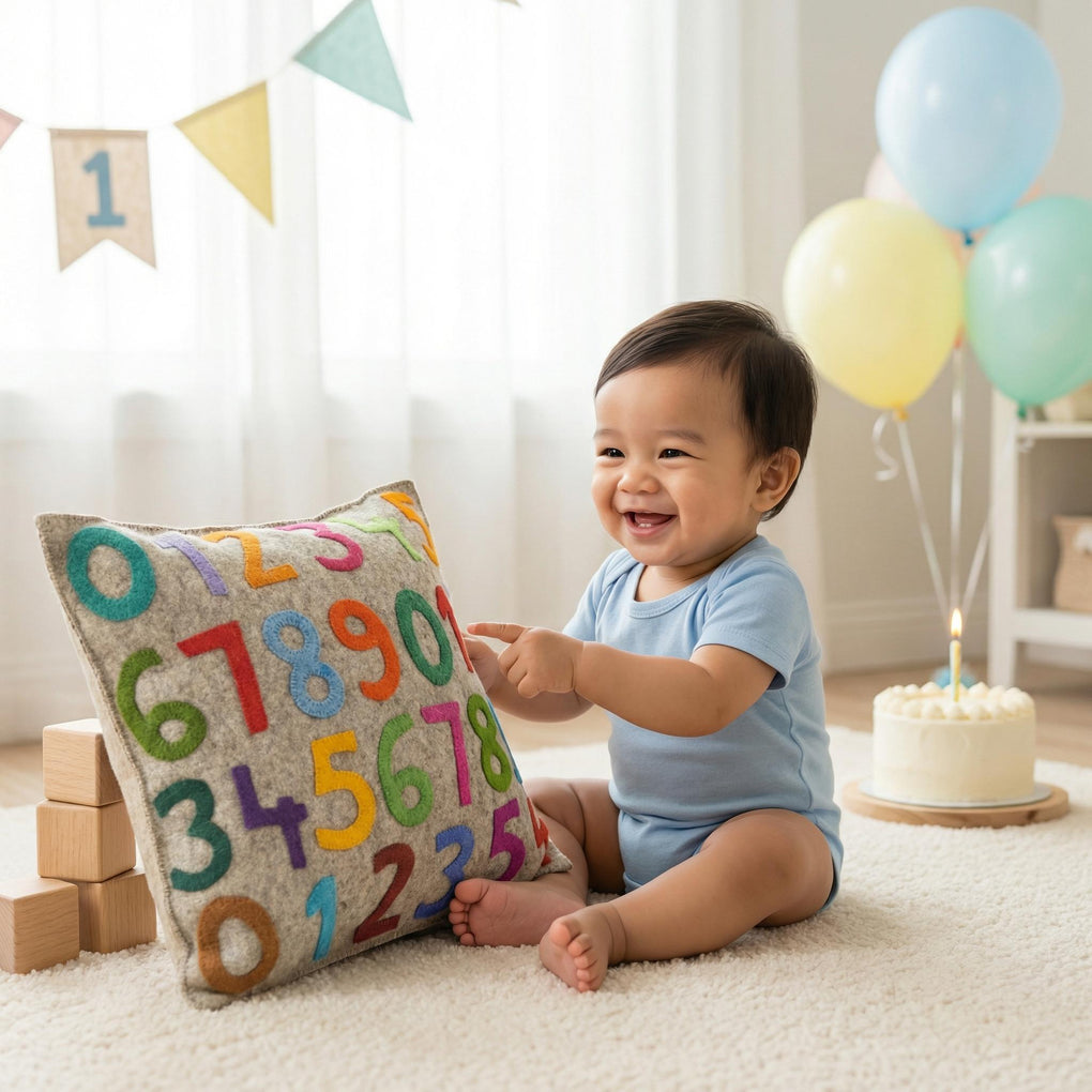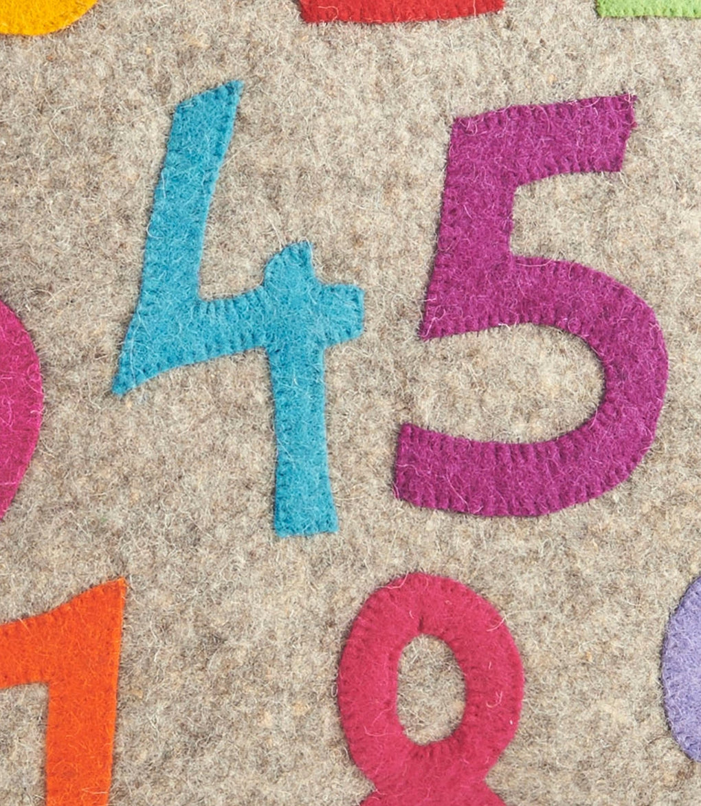 The digits seem to dance on this colorful pillow cover! Perfect for little ones learning to count. Hand felted and hand appliqued in 100% sustainable wool felt.
