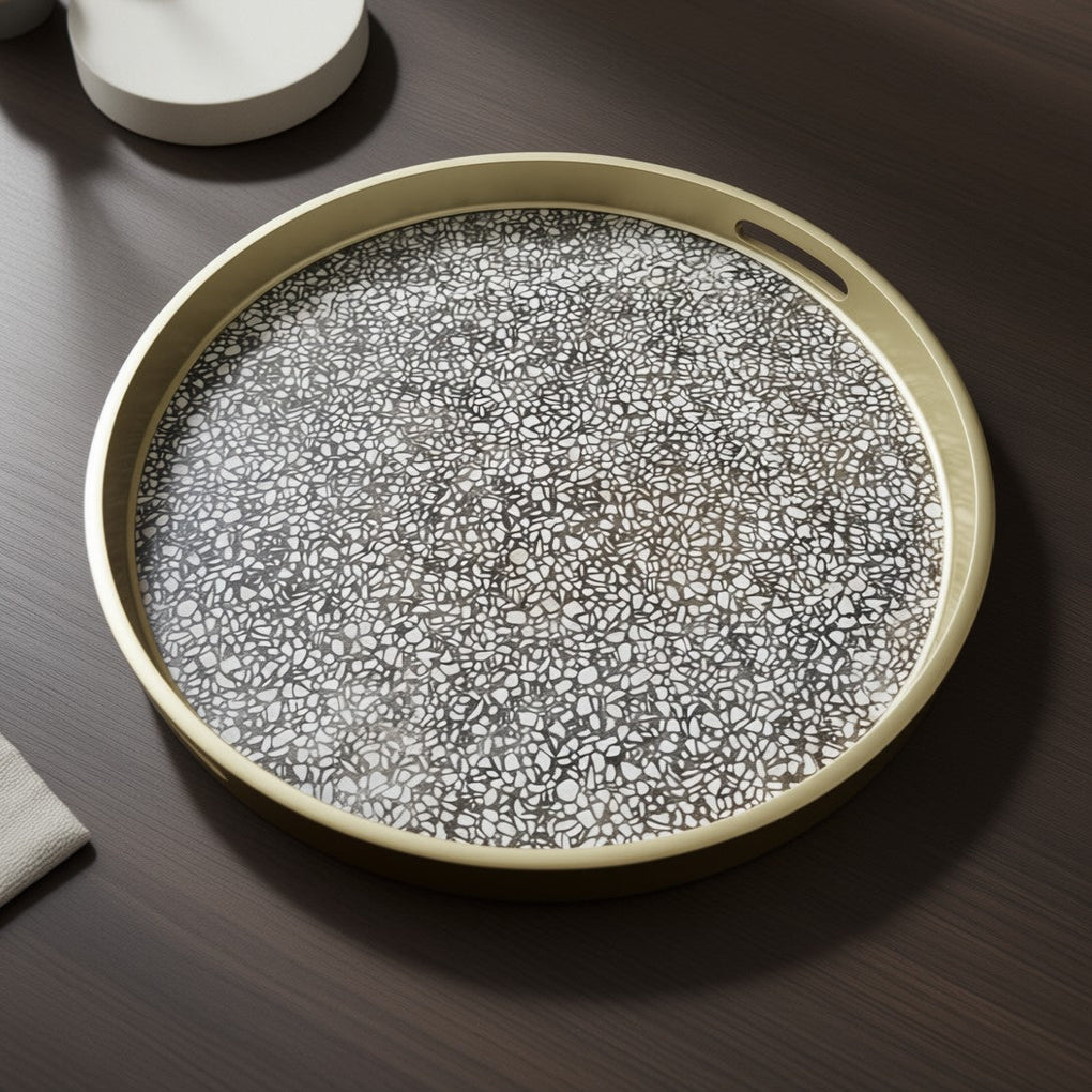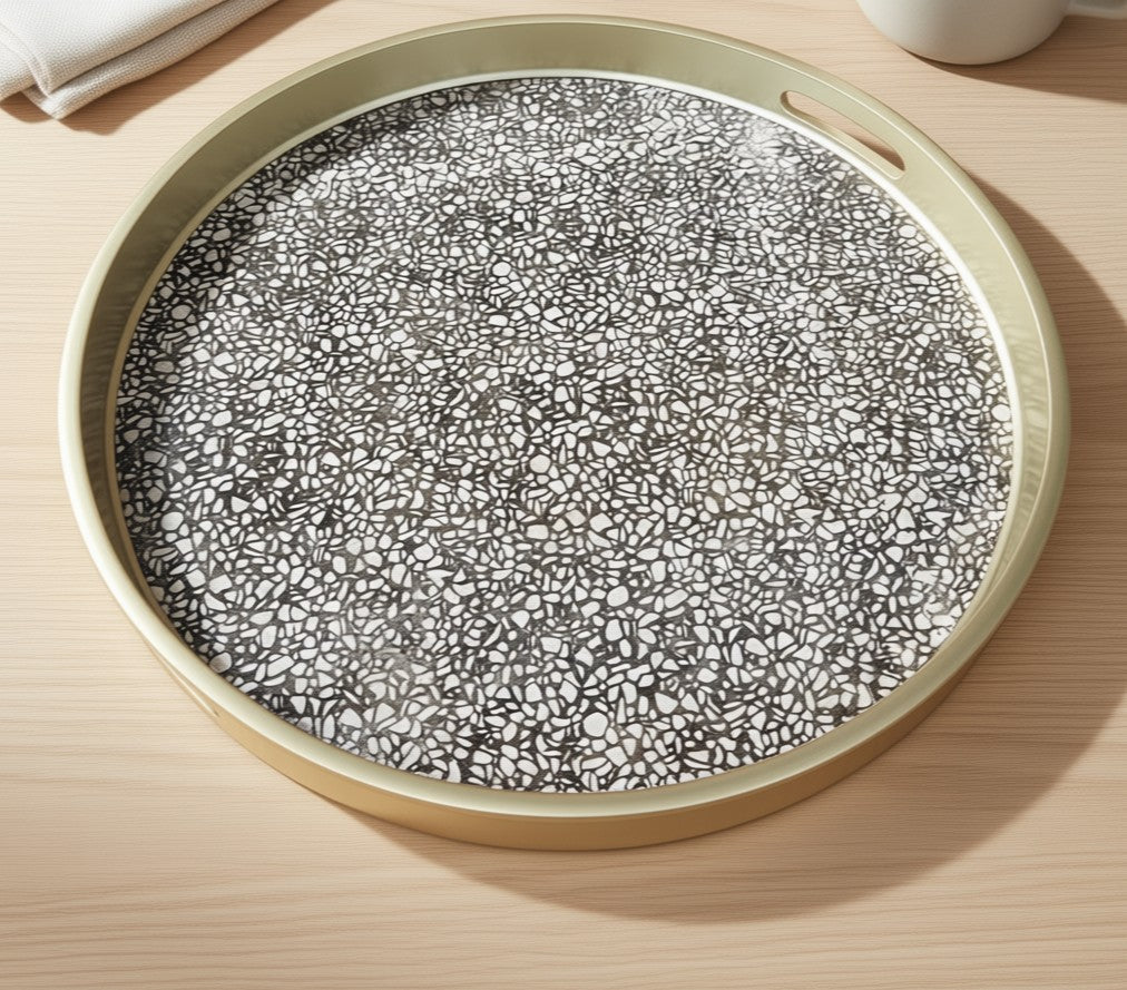 Handmade Reverse Painted Mirror Round Tray in Terrazzo
