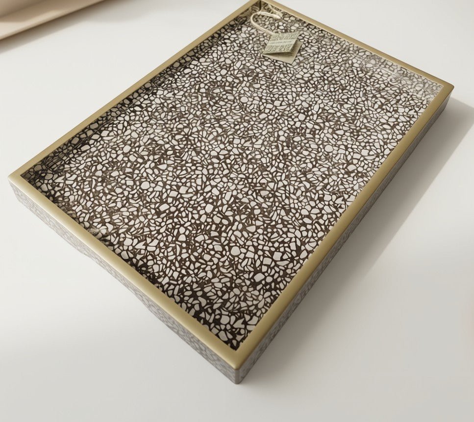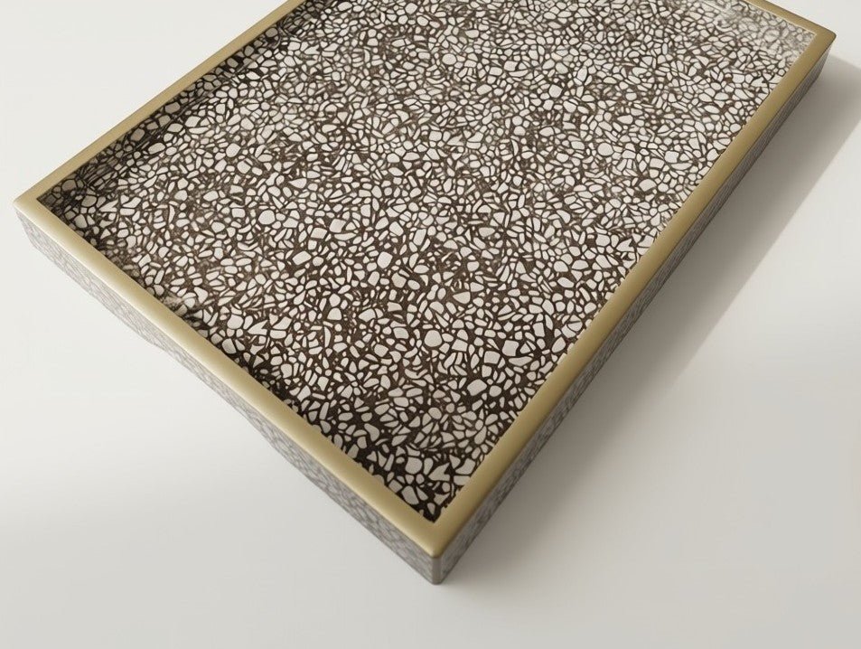 Handmade Reverse Painted Mirror Tray in Terrazzo - Medium