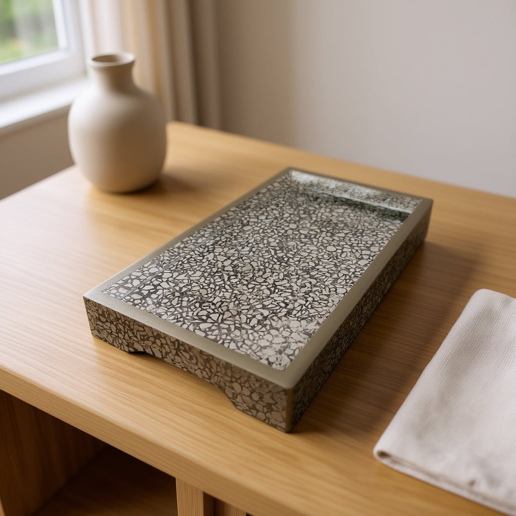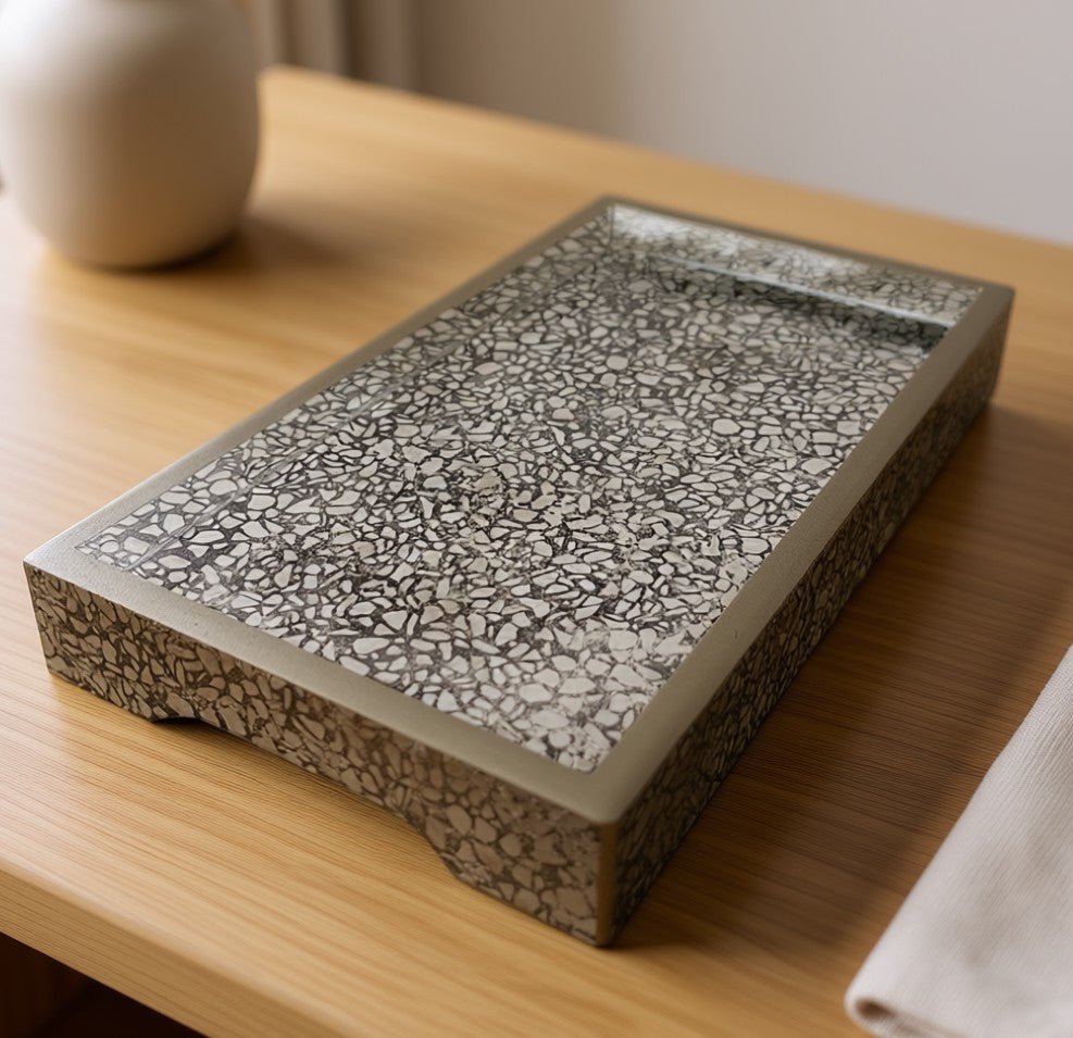 Handmade Reverse Painted Mirror Tray in Terrazzo -Small