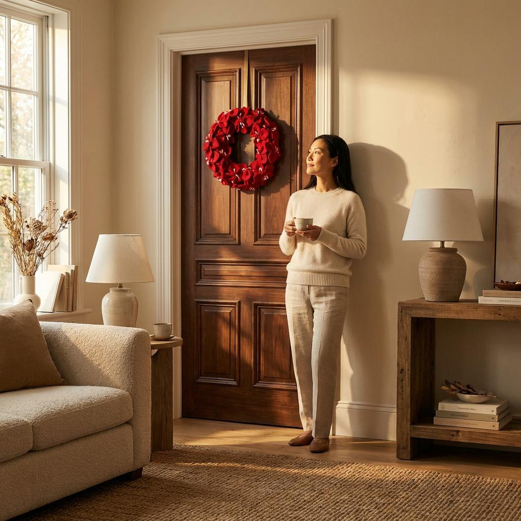 Handmade Hand Felted Wool Wreath - Red Amaryllis Flowers - 14" Arcadia Home