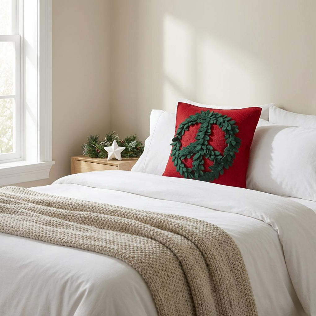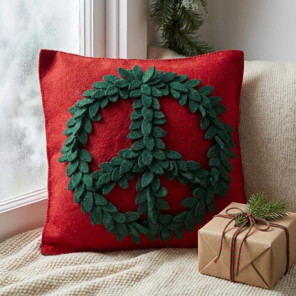 Hand Felted Wool Pillow, Green Peace Sign Red‚ 20" Arcadia Home