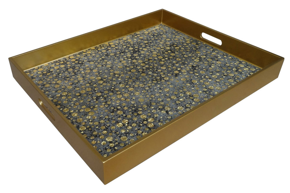 Handmade Reverse Painted Mirror Tray with in Gold Dots - Extra Large