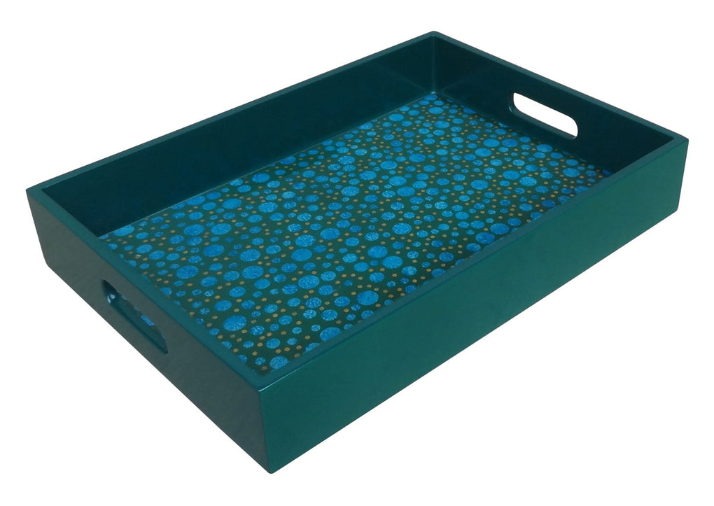 Handmade Reverse Painted Mirror Tray Blue and Green Dots - Medium Arcadia Home