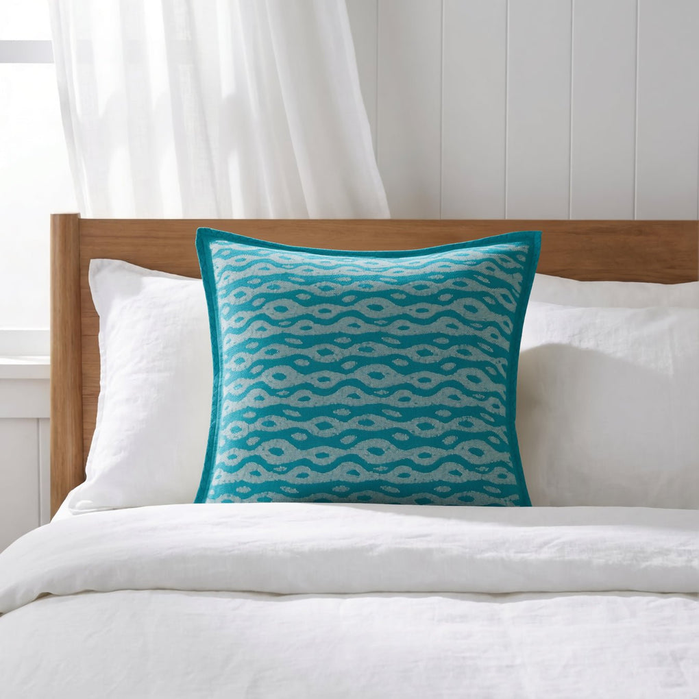 Artisan Hand Loomed Cotton Square Pillow - Blue Ocean Design - 24"