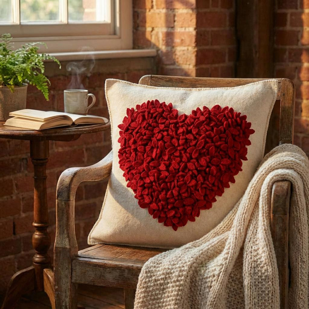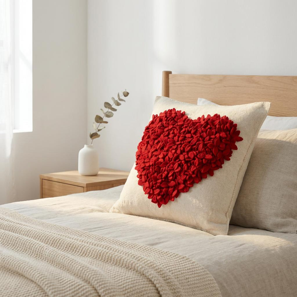 Hand Felted Wool Pillow Cover - Red Heart Cream - 20" Arcadia Home