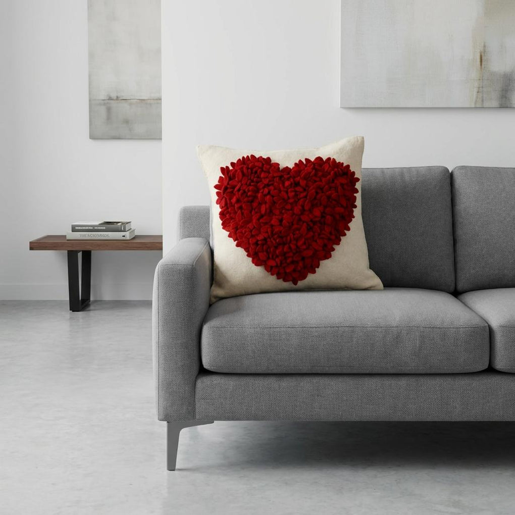 Multitudes of hand-stitched petals create the giant heart on this beautiful statement piece. Show your love by placing this accent pillow on a couch or bed, or gifting it to a loved one.