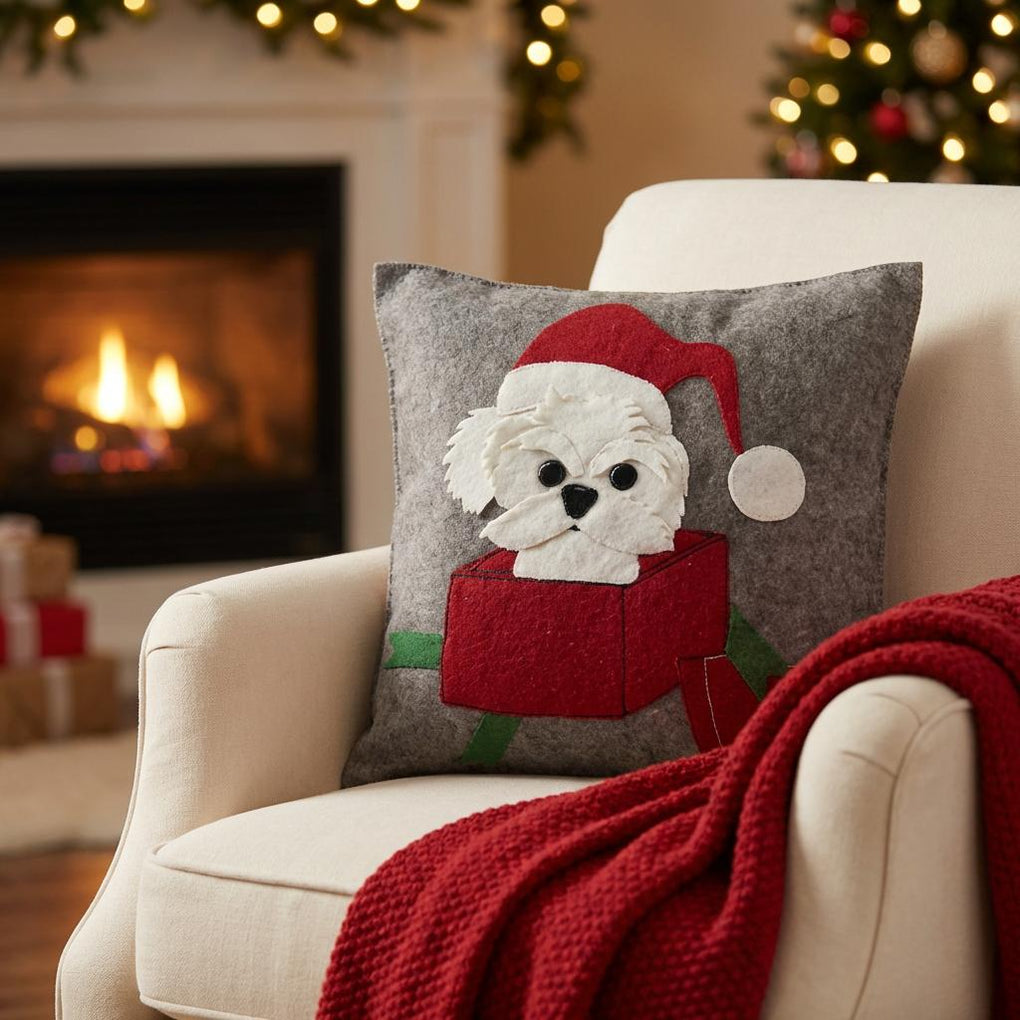 Hand Felted Wool Christmas Pillow - Dog Box - 20" Arcadia Home