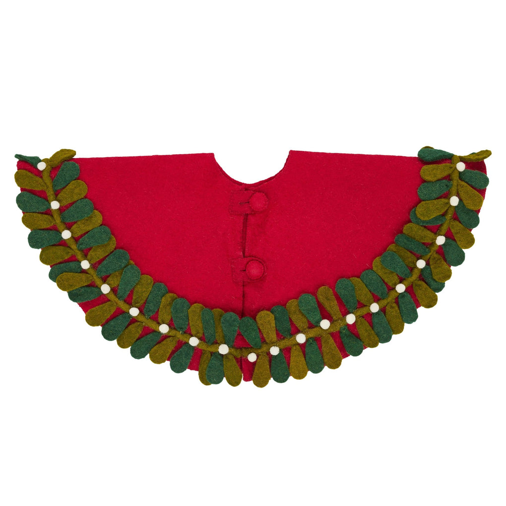 Handmade Christmas Tree Skirt in Felt - Mistletoe Border on Red - 26"
