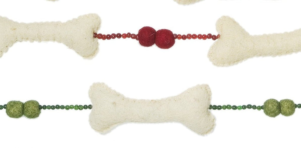Measuring approximately 6 feet long, it’s perfect for draping on your tree or around your home. Each piece is hand-felted and crafted from 100% sustainable wool by skilled artisans in India, ensuring a unique touch. 10 Bones per Strand